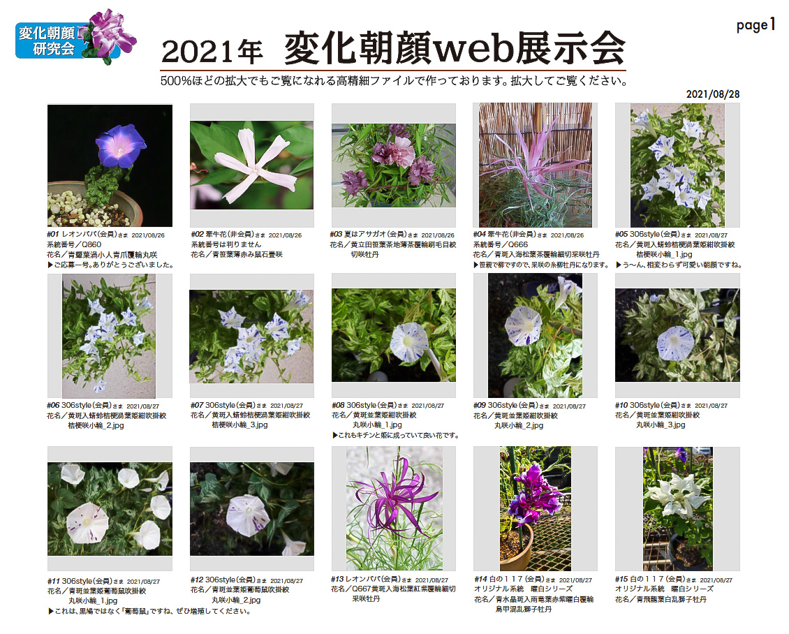 「変化朝顔web展示会」の発表は9月5日予定でしたが、変更して逐次発表としての第一回目を発表しました。