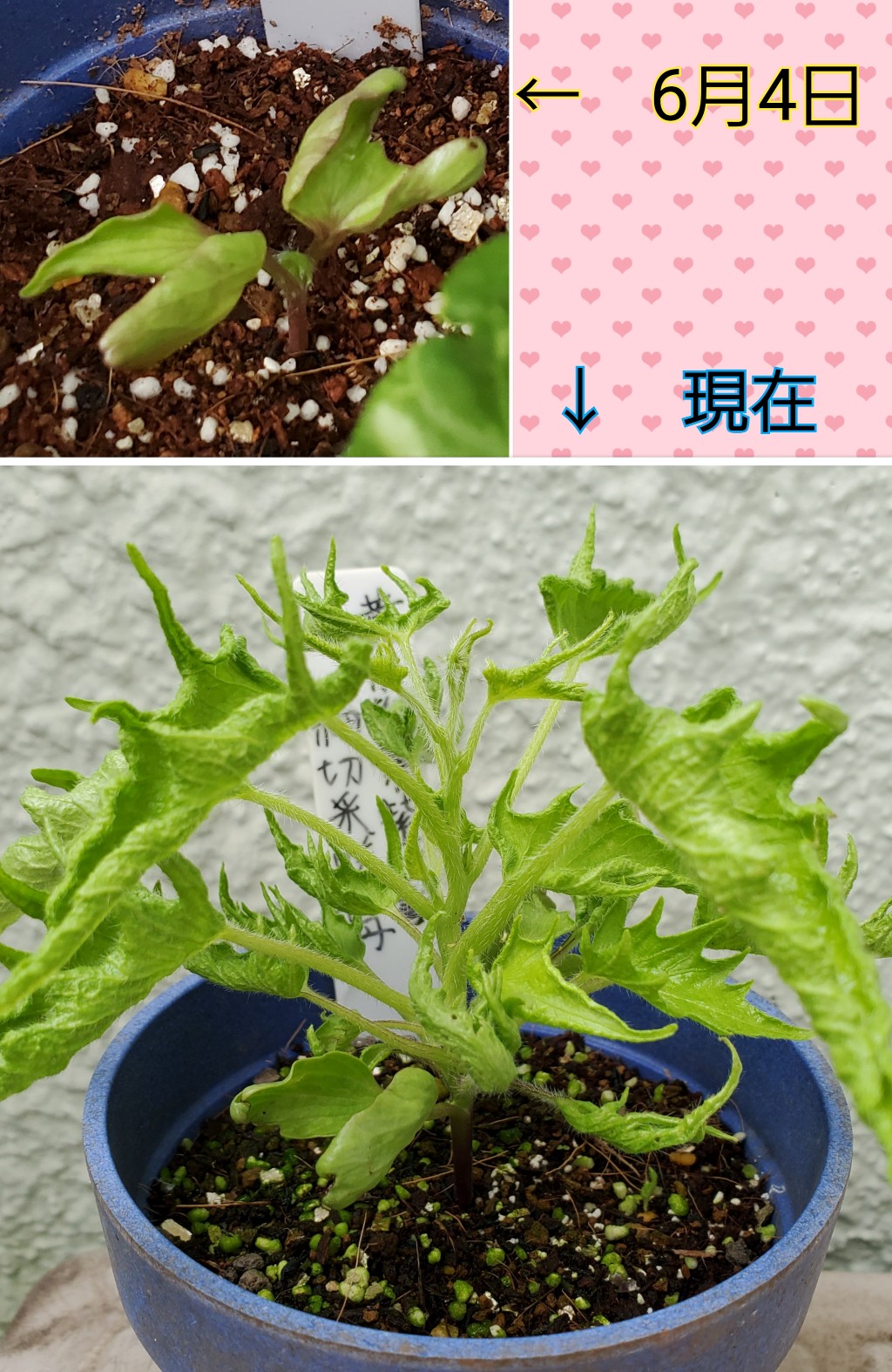 7号鉢が家にありましたので、どちらも1週間ほど前に7号鉢に植え替えました。