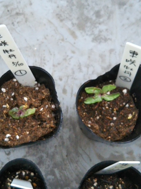 あさがおの先生方見て頂けませんか。上のほうにアップ致します。私は、全部出物でないと思います。どうぞアドバイス宜しくお願い致します。こちらは、車咲牡丹、9つの発芽した全部を添付致します。