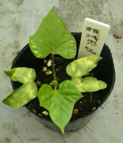 おはようございます。変化朝顔研究会の皆様、部外者ですが投稿させて下さい。その後、変化朝顔研究会さんから九年前、お譲り頂いた青葉紫覆輪車咲牡丹、さらに4つ発芽して全部で9つ育ってます。仁田英二先生著の「変化朝顔図鑑」P100を読んだところ99%親木本数が8とあります。葉出物が出たのは、白の117さまに見て頂いて2個あとの6個が親木だとすると会員その一さまに伺ったお話の3本で維持したおはなしとあわせるともしかしてうまく育てれば系統維持は、大丈夫だと思っても良いですか。それともあと親木2本たりないからやはり運まかせですかね。