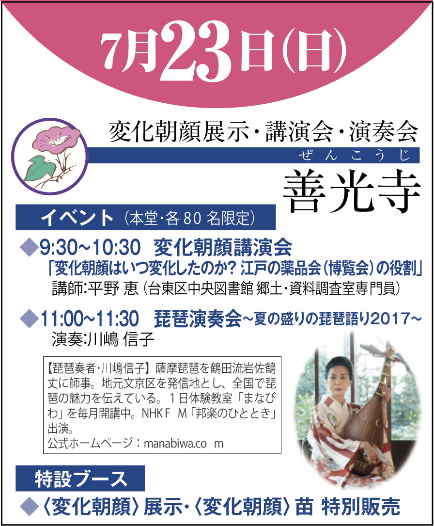 ↓変化朝顔展示会案内ダウンロードは下のリンクからどうぞ。